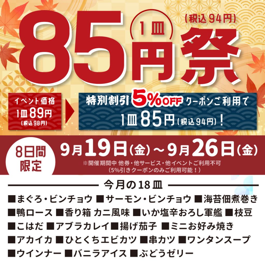 クーポンご利用で1皿85円!期間限定のお得なイベントです。