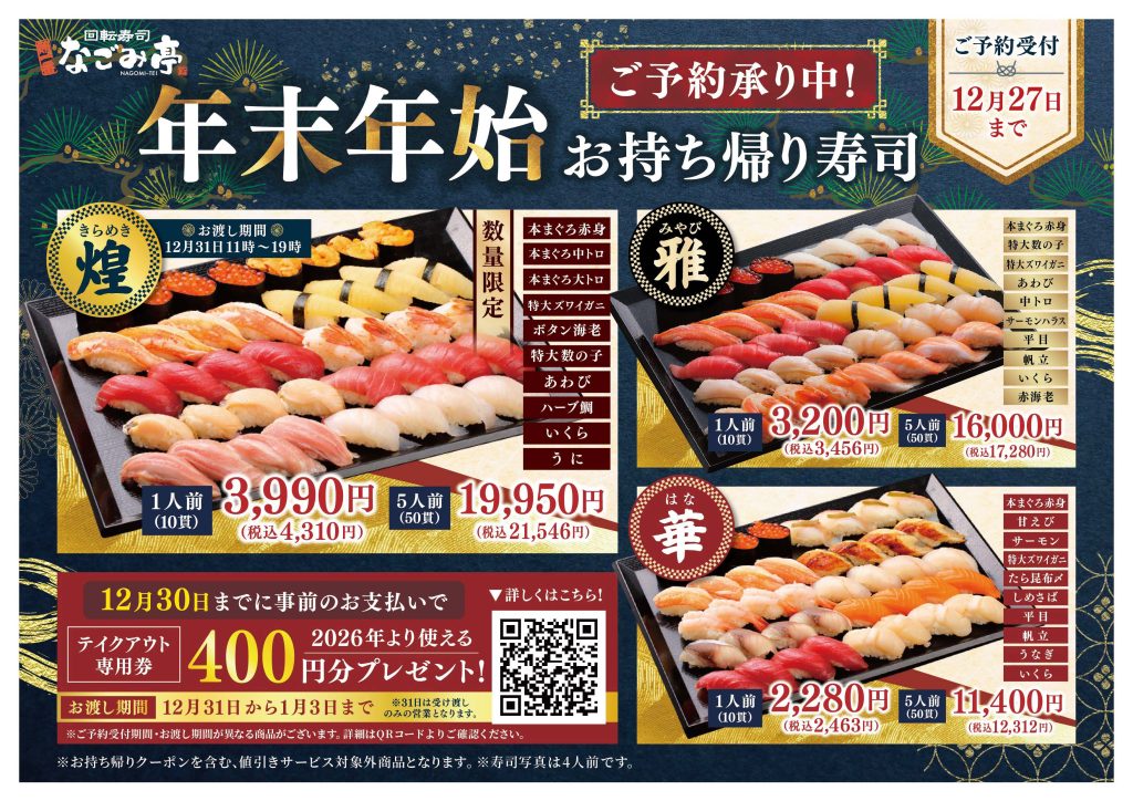 【年末年始お持ち帰り寿司】ご予約承り中!!