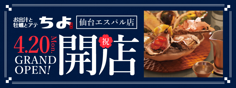 エスパル仙台本館地下1階に、お出汁と牡蠣が自慢のお出汁と牡蠣とアテ ちよ 仙台エスパル店がOPEN!