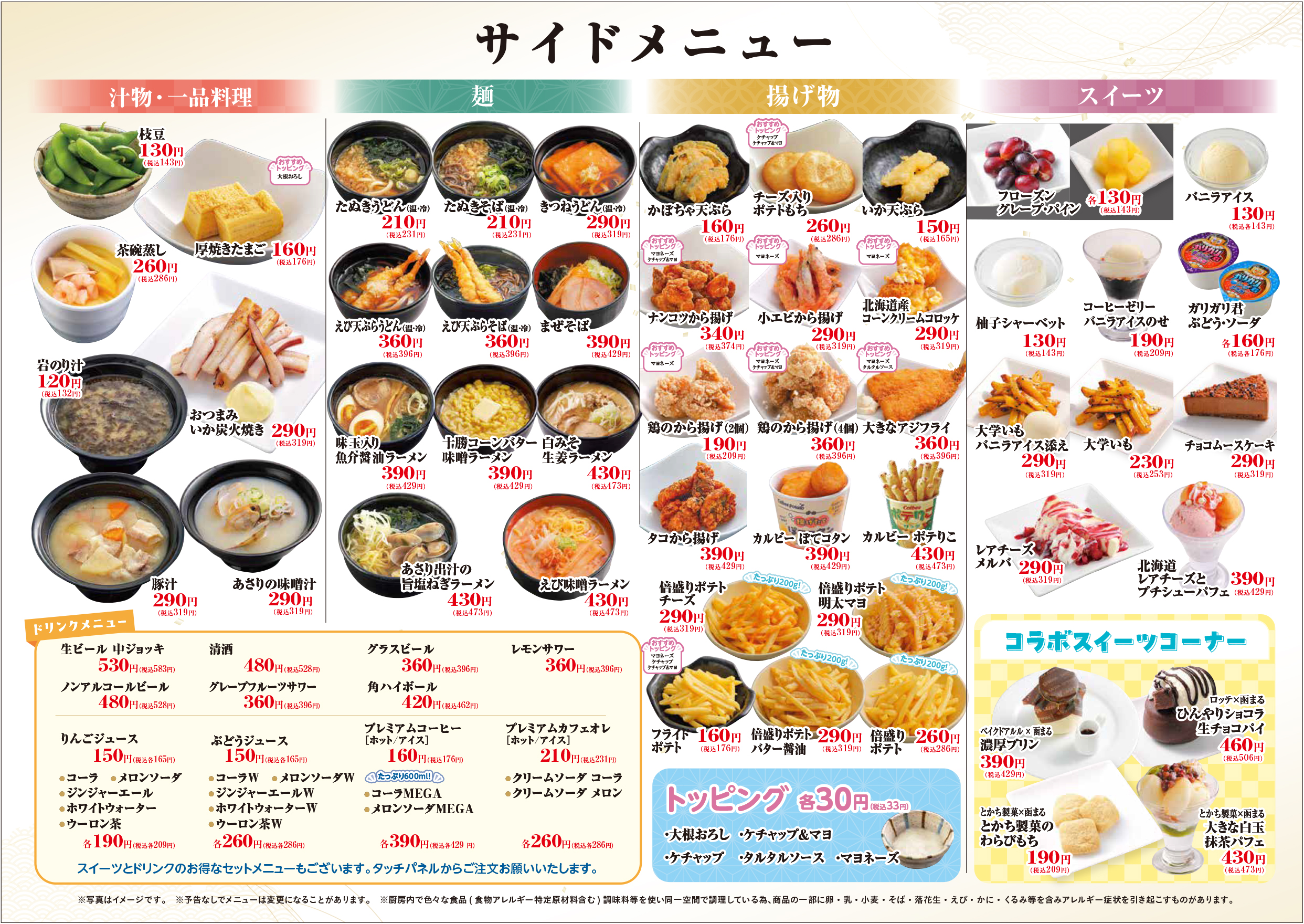 サイド・スウィーツ・ドリンクメニュー