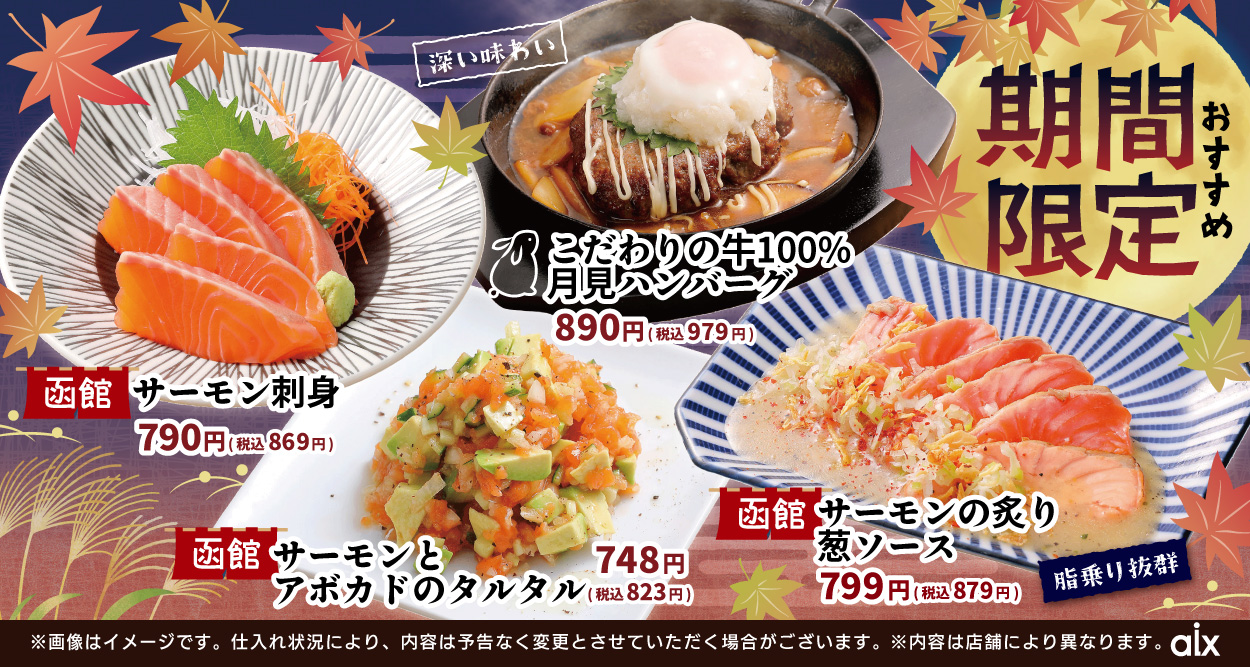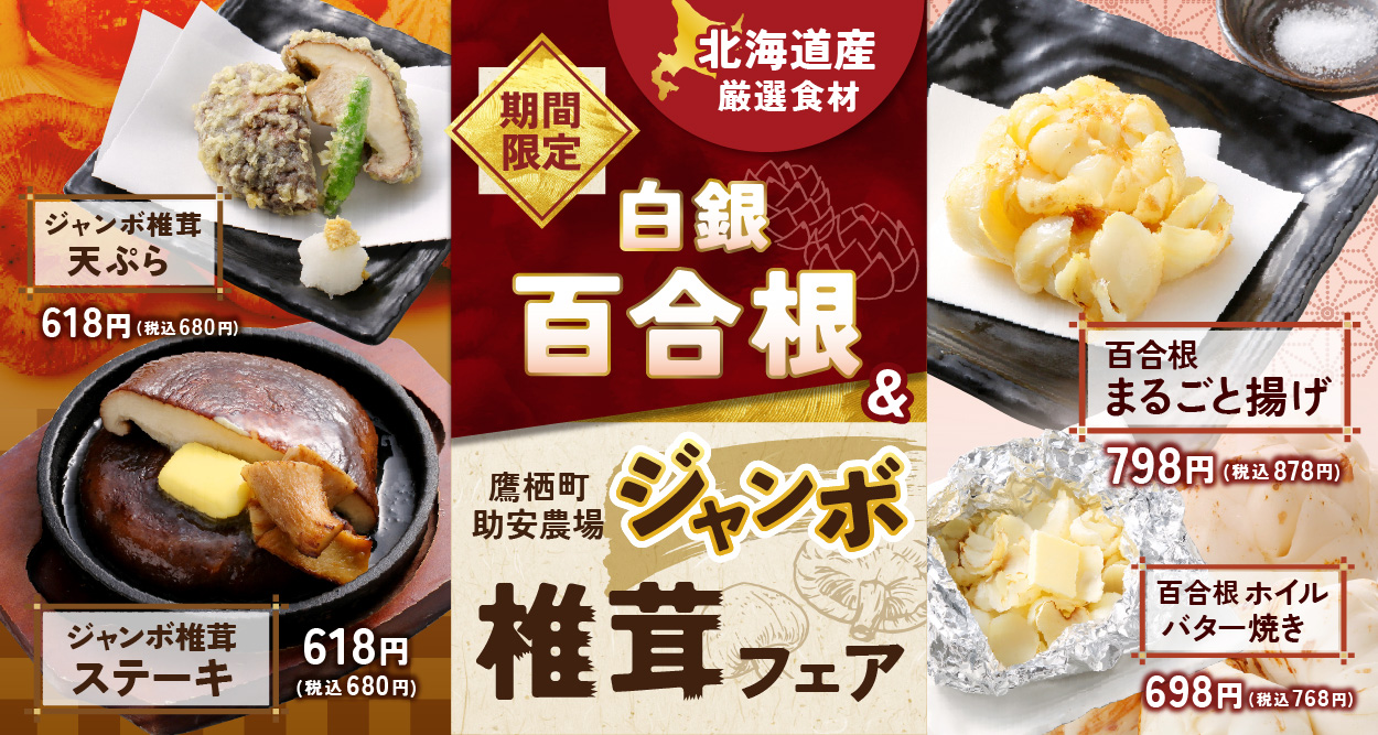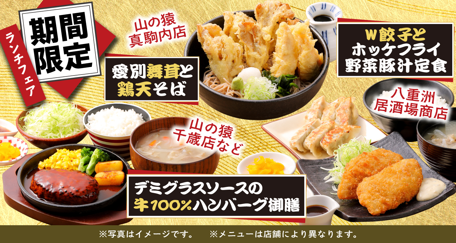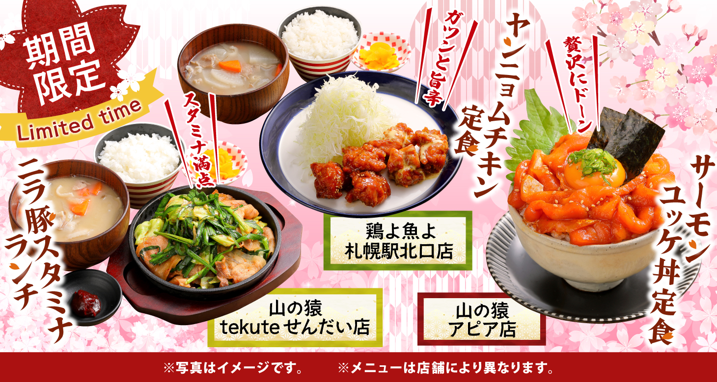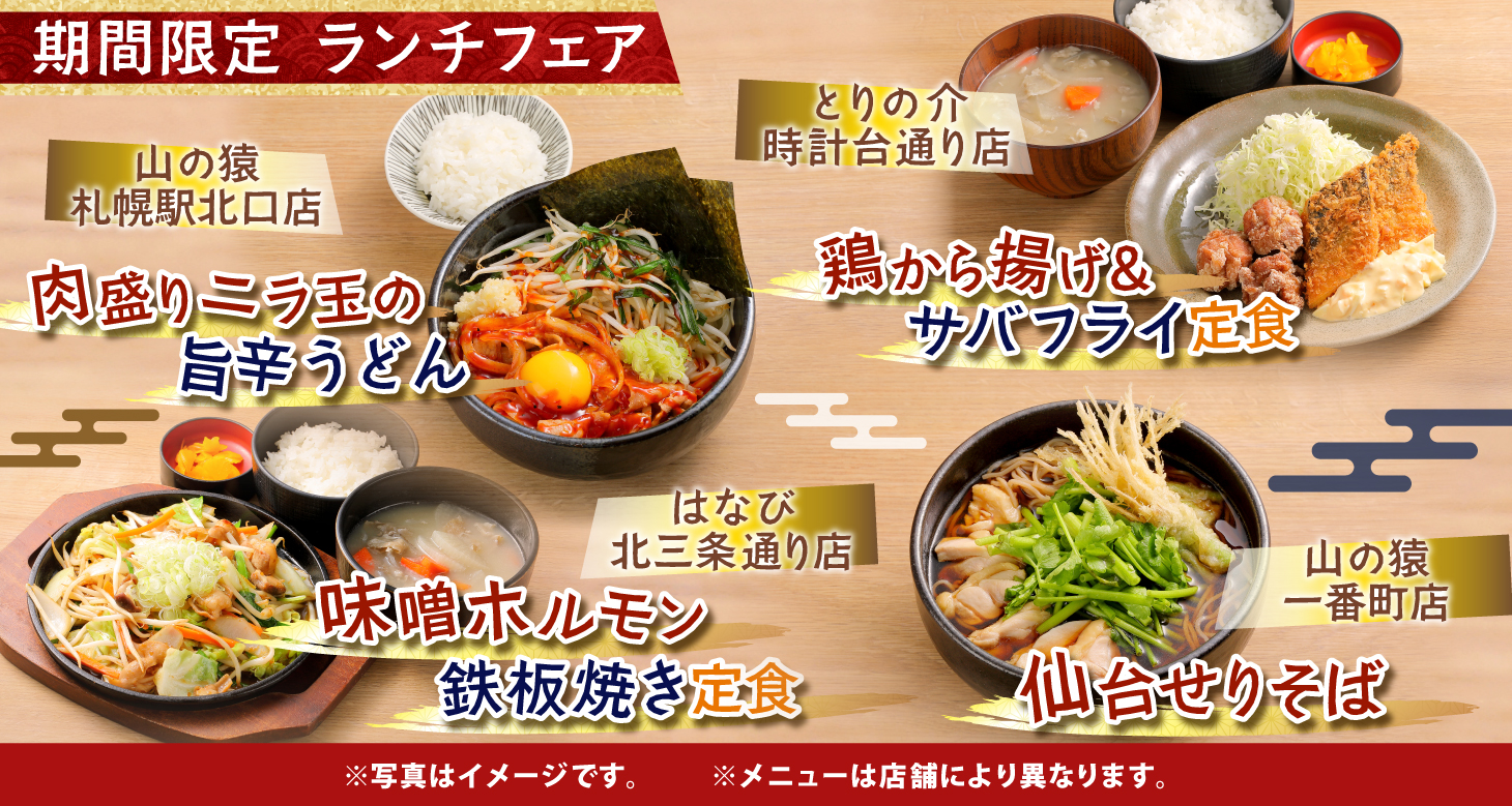 山の猿では北海道産の食材を中心としたラインナップ。常時130を超えるメニューから「食べたいものがきっとある!」をコンセプトに毎日元気に営業しております。