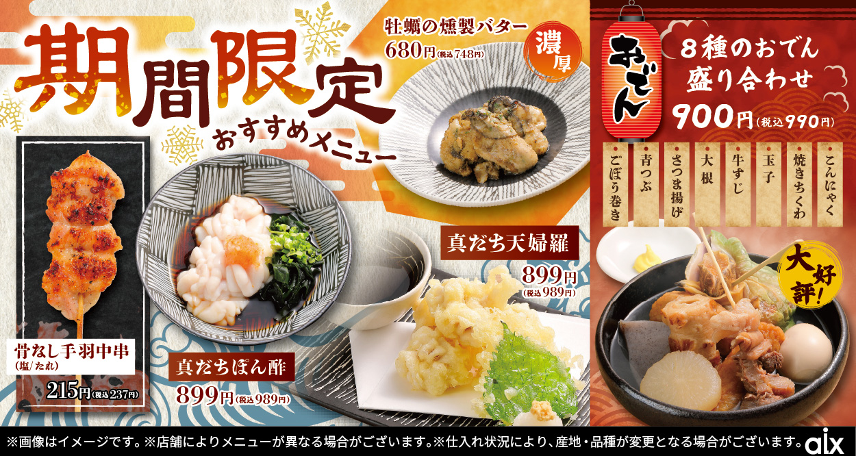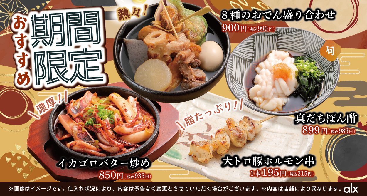 食べ物も飲み物もとにかく種類豊富! あなたの「食べたい」がきっと見つかるTHE 居酒屋。"