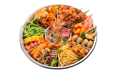 サーモンハラス・本まぐろ中トロ・本まぐろ赤身・活真鯛・特大ズワイガニ・ 特大数の子・あわび・ボタン海老・いくら・帆立